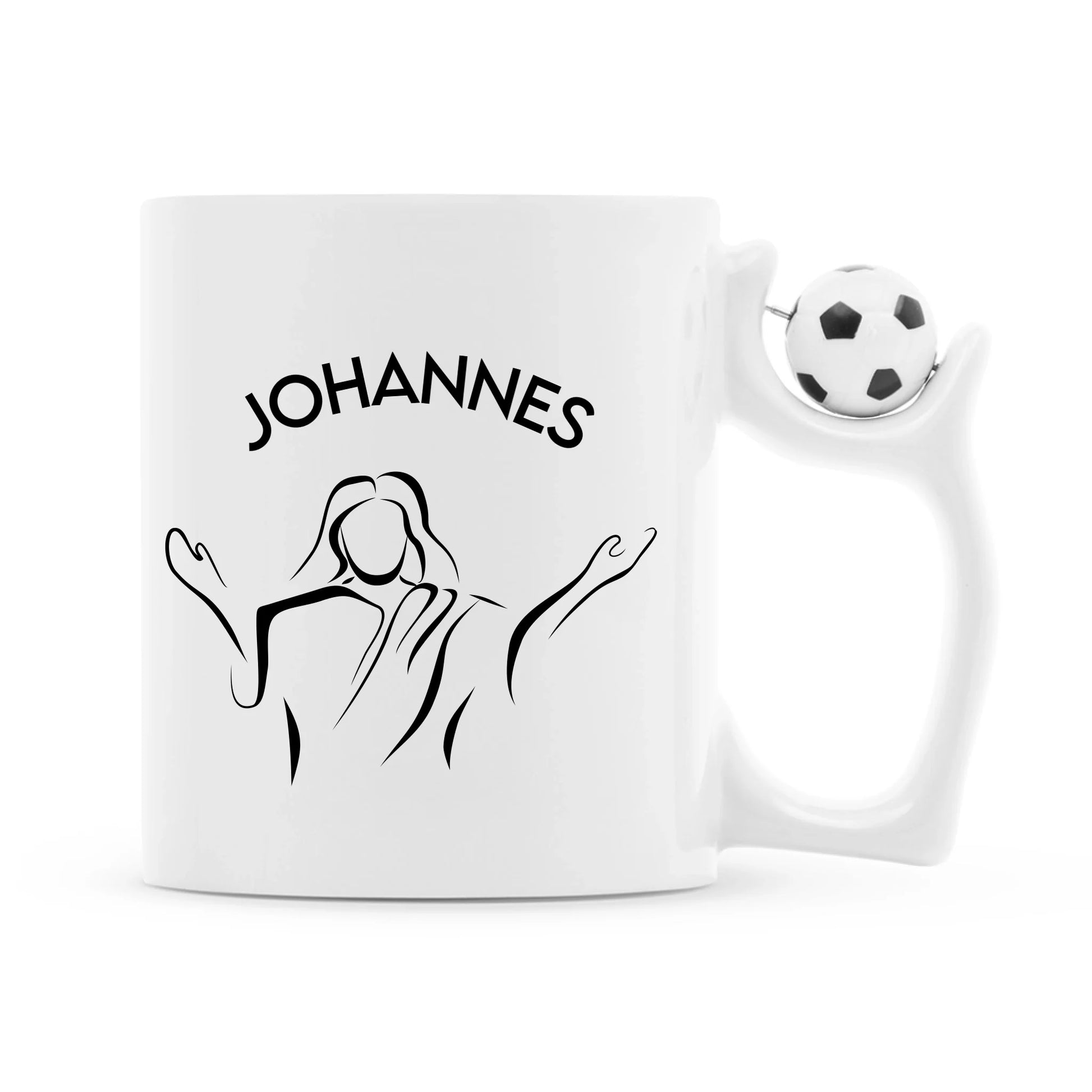 Personalisierbare Fußball-Tasse mit Jesus-Motiv – mit drehbarem Ballgriff für echte Fans mit Glauben